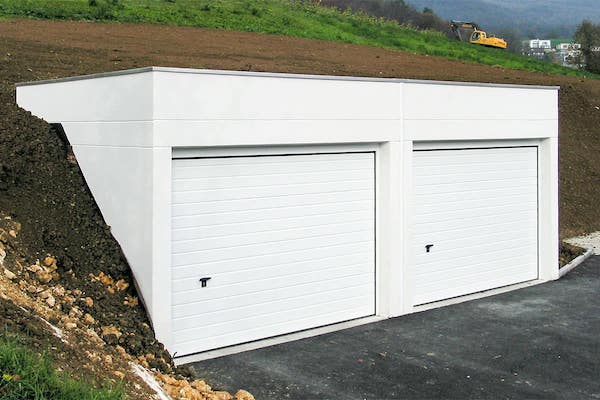 Bei der Erdaufüllung sind die Wände einer Unterflurgarage besonders starkem Druck ausgesetzt. Unsere Hanggaragen werden auf Mass gefertigt, dabei wird bei der Planung besonders Wert auf verstärkte Wände und ein verstärktes Dach gelegt um ein Optimum an Stabilität zu bieten.
