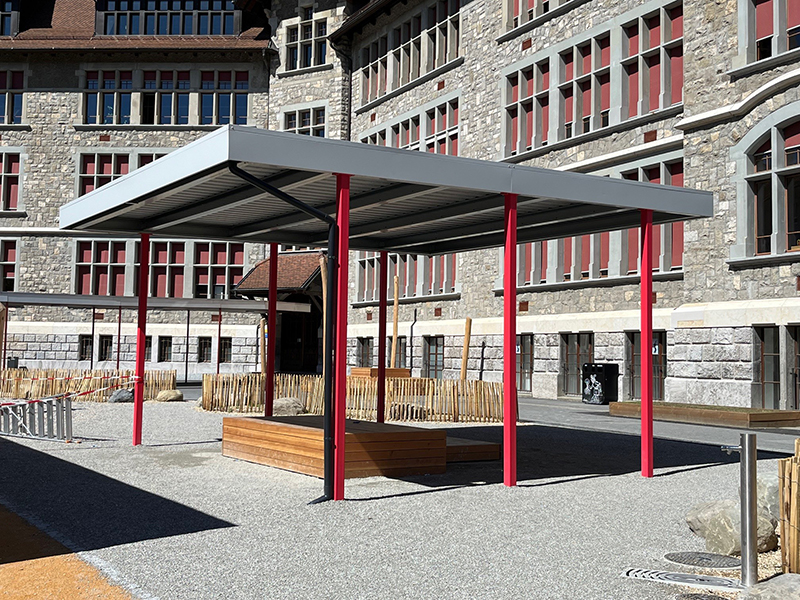 Die wetterbeständige Konstruktion basiert auf dem bewährten Metall Carport System und kann den verschiedenen Anforderungen in Grösse und Materialien angepasst werden. Auch eine Kombination mit einem Gerätehaus ist möglich, das modular jederzeit erweitbar ist. Vertrauen auch Sie, wie das Verkehrshaus in Luzern auf eine Überdachung von Uninorm.